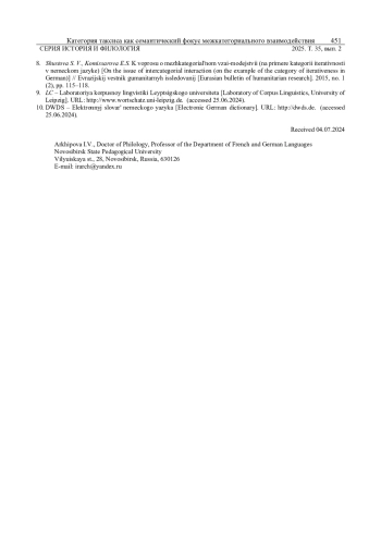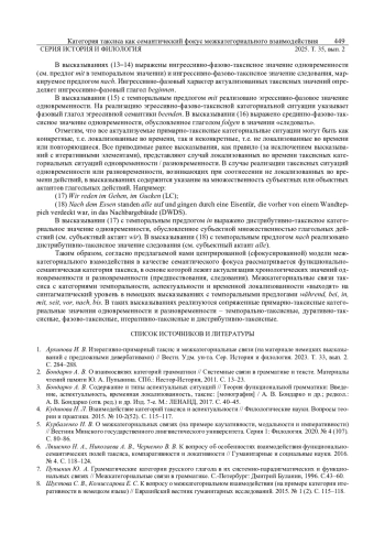АРХИПОВА И. В. КАТЕГОРИЯ ТАКСИСА КАК СЕМАНТИЧЕСКИЙ ФОКУС МЕЖКАТЕГОРИАЛЬНОГО ВЗАИМОДЕЙСТВИЯ // ВЕСТНИК УДМУРТСКОГО УНИВЕРСИТЕТА. СЕРИЯ: ИСТОРИЯ И ФИЛОЛОГИЯ. 2025. Т. 35 № 2