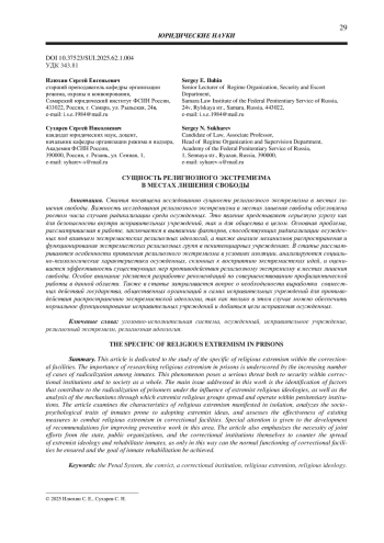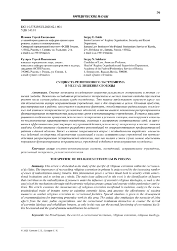 Статья: СУЩНОСТЬ РЕЛИГИОЗНОГО ЭКСТРЕМИЗМА В МЕСТАХ ЛИШЕНИЯ СВОБОДЫ (2025)