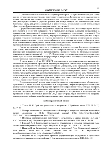 Ключевые фразы: уголовно-исполнительная система, осужденный, исправительное учреждение, религиозный экстремизм, религиозная идеология