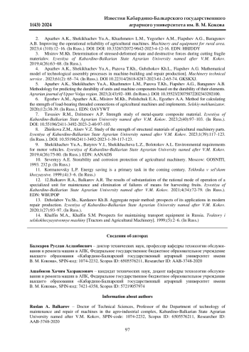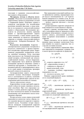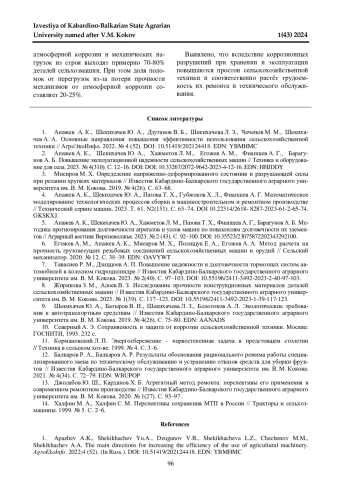 Статья: СОХРАНЯЕМОСТЬ И ЗАЩИТА ОТ КОРРОЗИИ СЕЛЬСКОХОЗЯЙСТВЕННОЙ ТЕХНИКИ В УСЛОВИЯХ КБР (2024)