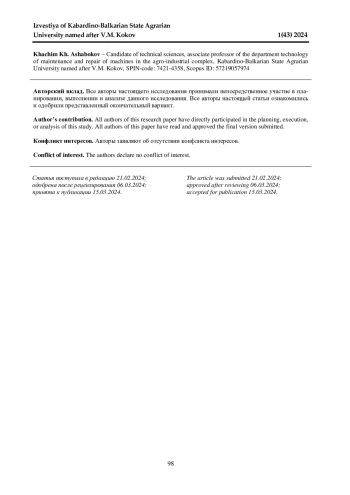 Журнал: ИЗВЕСТИЯ КАБАРДИНО-БАЛКАРСКОГО ГОСУДАРСТВЕННОГО АГРАРНОГО УНИВЕРСИТЕТА ИМ. В. М. КОКОВА