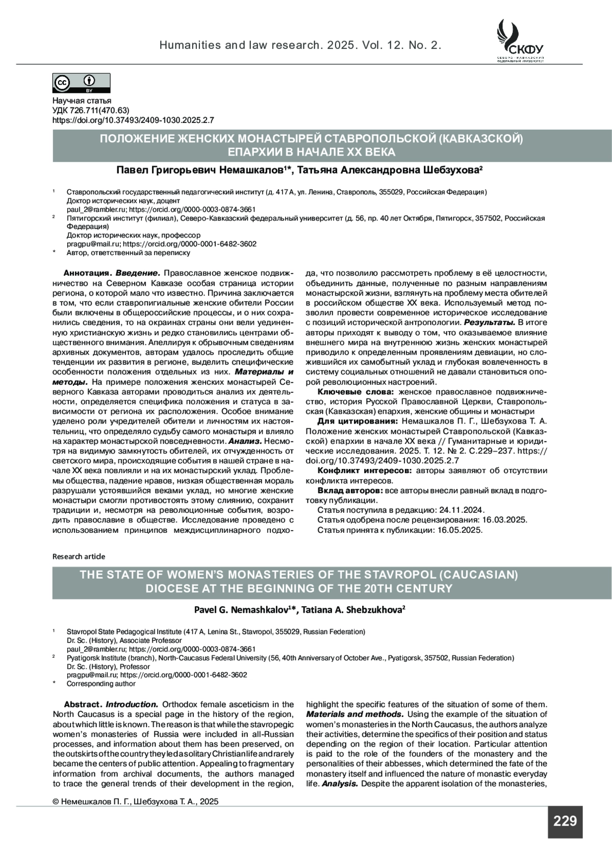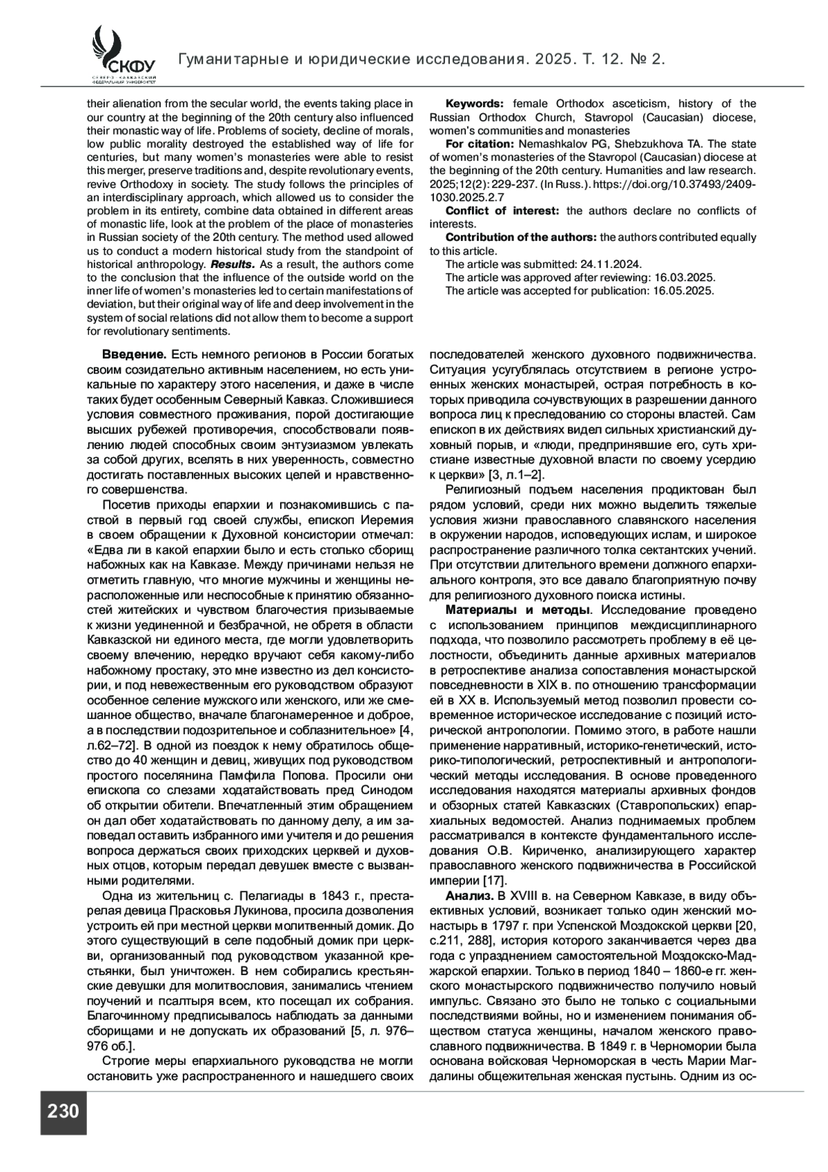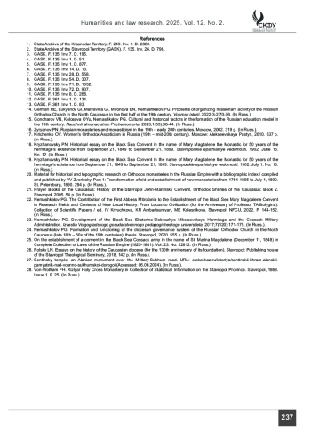 14. Герман Р. Э., Лукьянов Г. И., Малявина Г. И., Миронова Е. Н., Немашкалов П. Г. Проблемы организации миссионерской деятельности Русской Православной Церкви на Северном Кавказе в первой половине XIX в. // Вопросы истории. 2022. № 3-2. С. 70-76.