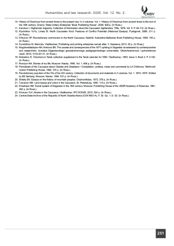 11. Кануков И. Горцы-переселенцы // Сборник сведений о кавказских горцах. Тифлис: б.и., 1876. Вып. 9. С. 84-112.