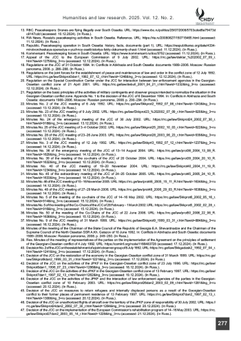 43. Решение СКК о деятельности ССПМ в зоне грузино-осетинского конфликта от 13 февраля 1997 г. URL: https://rrc.ge/law/Skkprot7dan1_1997_02_13_r.htm?lawid=1262&lng_3=ru (дата обращения: 19.12.2024).