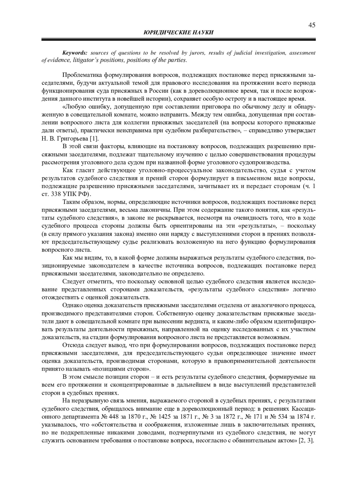 1. 	Григорьева Н. В. Вопросы, подлежащие разрешению коллегией присяжных заседателей, и участие защитника в составлении вопросного листа // Защитник в суде присяжных. М., 1997. 150 c.