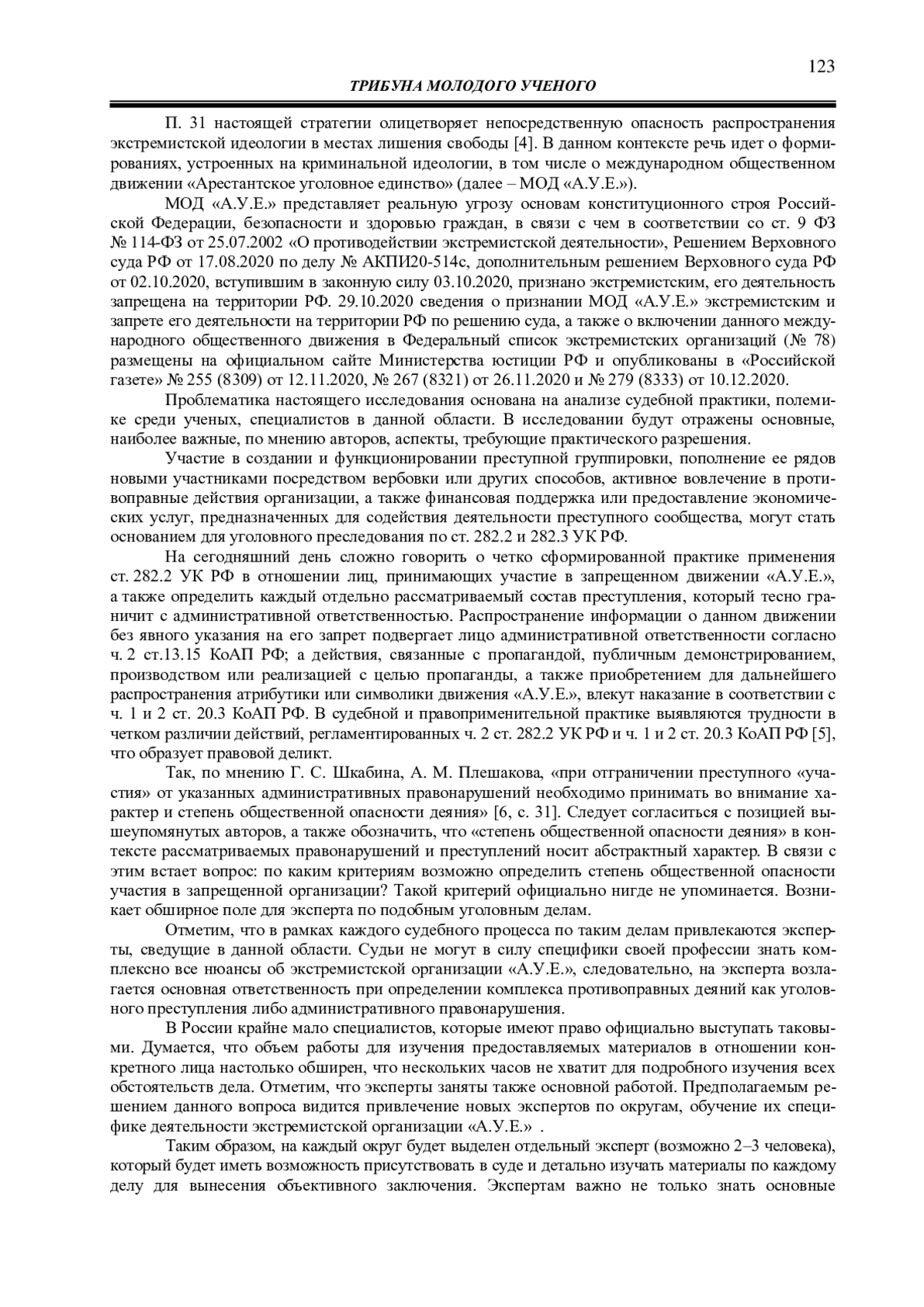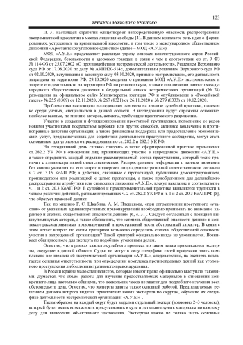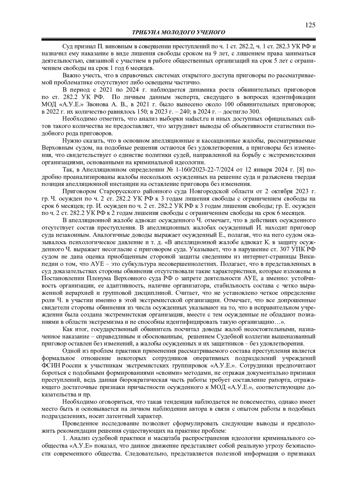 Статья: НЕКОТОРЫЕ ПРОБЛЕМЫ И ОСНОВНЫЕ ТЕНДЕНЦИИ ПРАКТИКИ ПРИМЕНЕНИЯ СТ. 282.2 УК РФ В ОТНОШЕНИИ ЛИЦ, УЧАСТВУЮЩИХ В МОД «А. У. Е.» (2025)