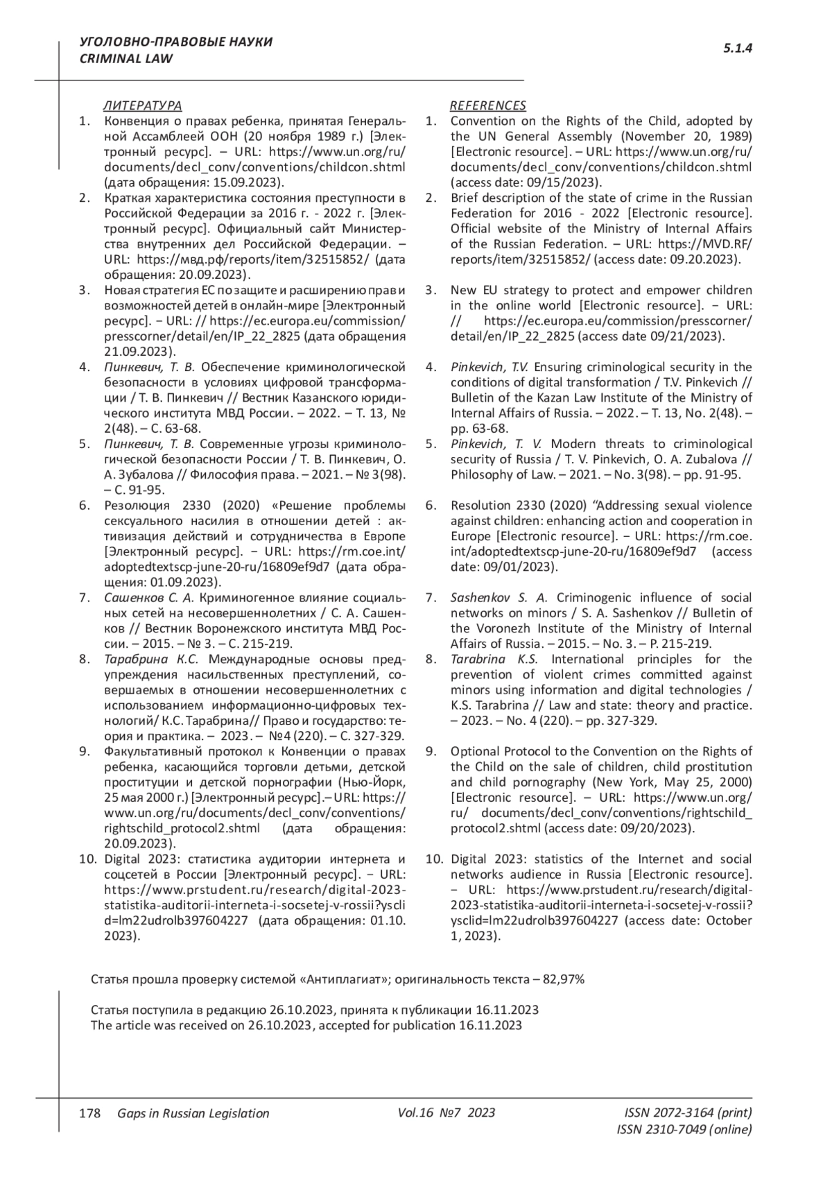 Resolution 2330 (2020) “Addressing sexual violence against children: enhancing action and cooperation in Europe [Electronic resource]. - URL: https://rm.coe.int/adoptedtextscp-june-20-ru/16809ef9d7 (access date: 09/01/2023).