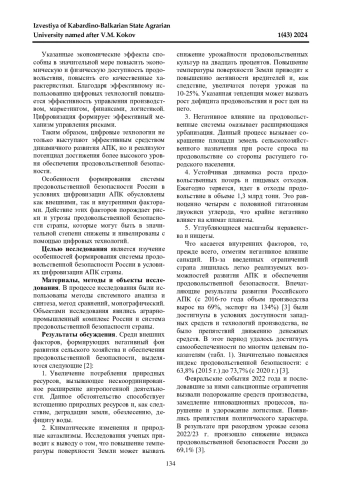 7. Кокова Э. Р. Роль современных технологий в обеспечении продовольственной безопасности регионов // Вестник экспертного совета. 2019. № 1(16). C. 10-14. EDN: OKYNOI