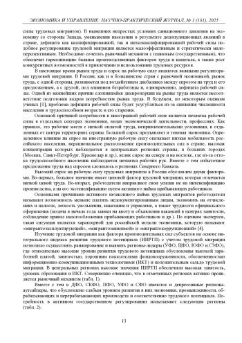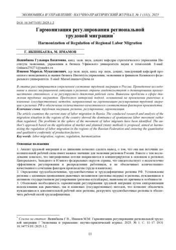 В статье рассматривается современное состояние трудовой миграции в России. Проведенное исследование и анализ миграционной ситуации в регионах страны свидетельствуют о доминировании преимущественно стихийного, а не регулируемого движения рабочей силы. Выявлены проблемы в сфере движения трудовых мигрантов. Предложен авторский подход, основанный на применении рыночных и плановых (государственных) методов, направленный на гармонизацию регулирования трудовой миграции в регионах РФ и обеспечение количественно-качественного соответствия факторов производства