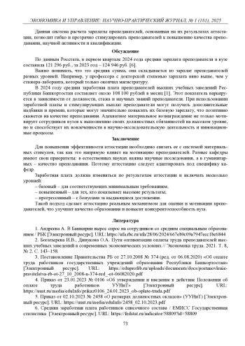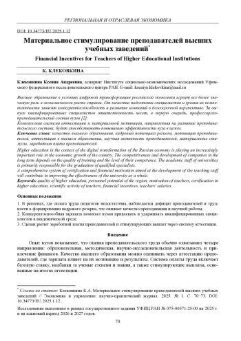 КЛЕКОВКИНА К. А. МАТЕРИАЛЬНОЕ СТИМУЛИРОВАНИЕ ПРЕПОДАВАТЕЛЕЙ ВЫСШИХ УЧЕБНЫХ ЗАВЕДЕНИЙ // ЭКОНОМИКА И УПРАВЛЕНИЕ: НАУЧНО-ПРАКТИЧЕСКИЙ ЖУРНАЛ. 2025. № 1 (181)