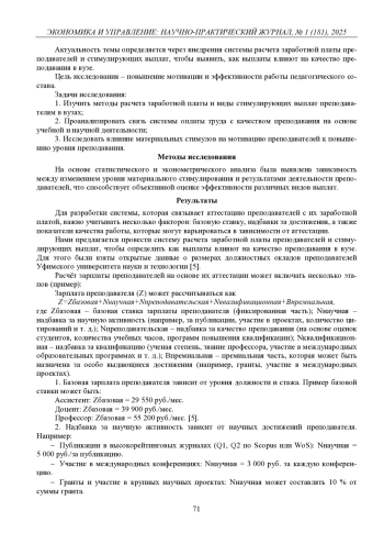 Статья: МАТЕРИАЛЬНОЕ СТИМУЛИРОВАНИЕ ПРЕПОДАВАТЕЛЕЙ ВЫСШИХ УЧЕБНЫХ ЗАВЕДЕНИЙ (2025)