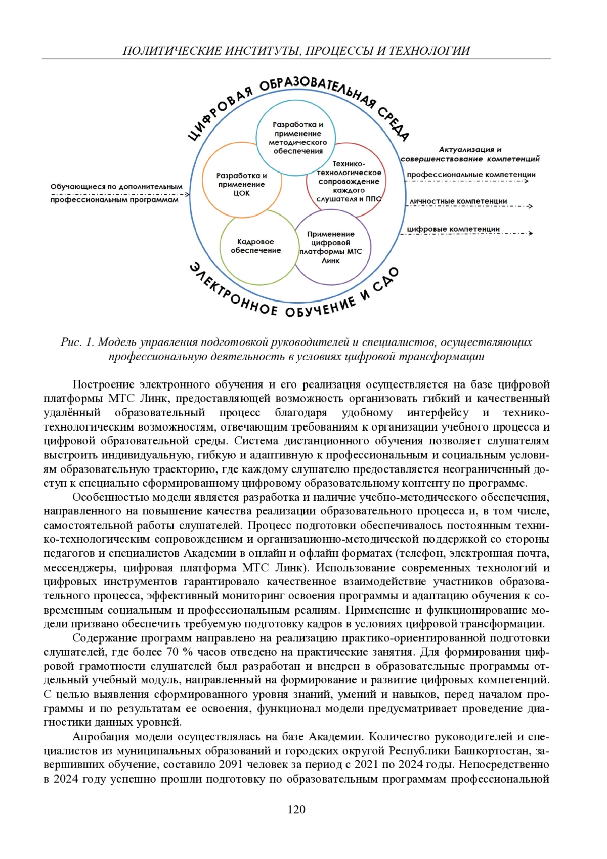 Статья посвящена вопросу совершенствования кадрового потенциала региона в условиях цифровой трансформации. Представлены результаты апробации модели управления подготовкой руководителей и специалистов, осуществляющих профессиональную деятельность в условиях цифровой трансформации. Проведено исследование уровня сформированности профессиональных, личностных и цифровых компетенций кадров региона. Количество респондентов, принявших участие в исследовании, составляет 400 человек