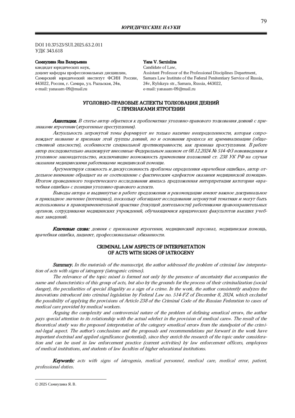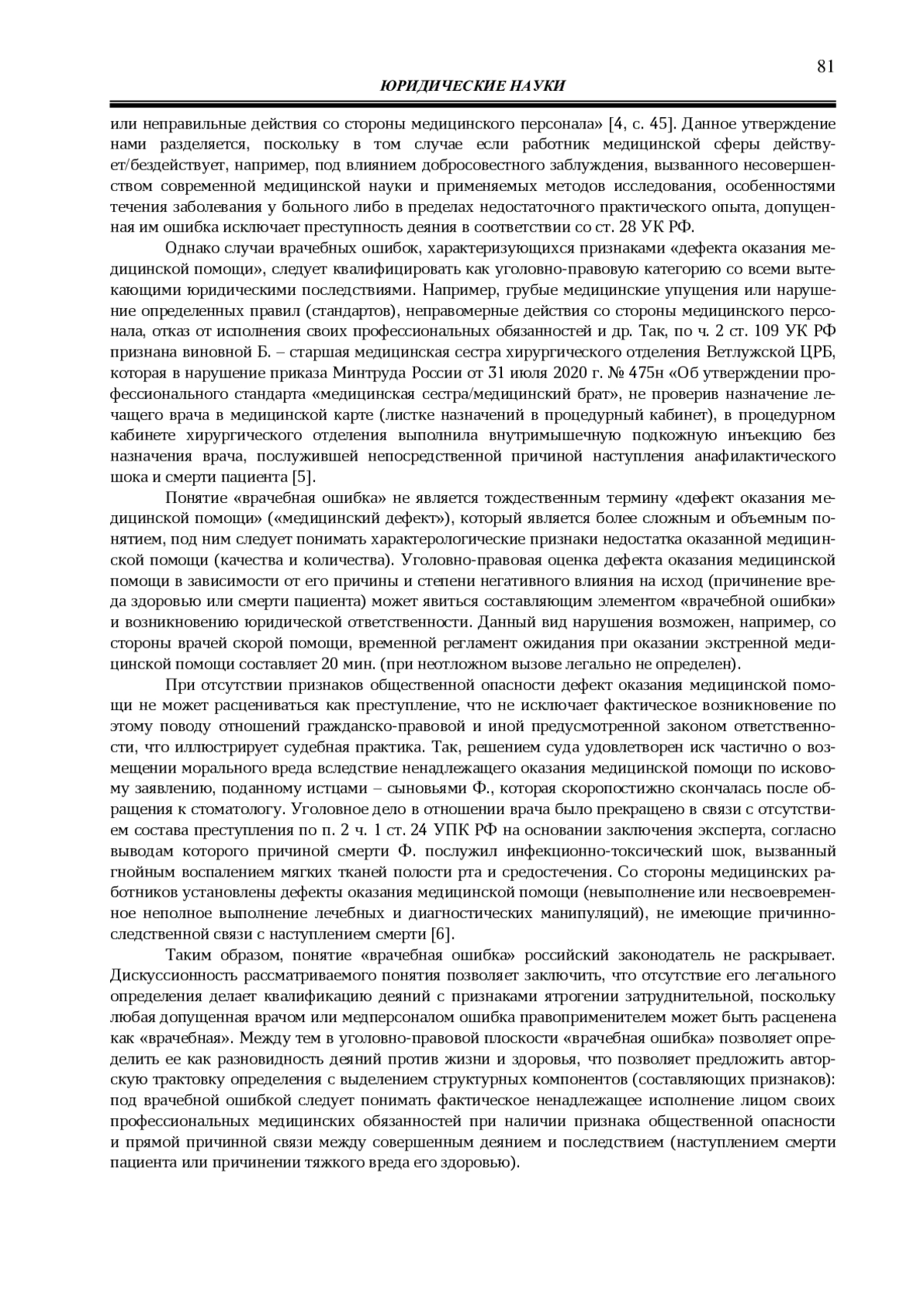 4. 	Малышева Ю. Ю. Генезис понятия врачебной ошибки и его отражение в отечественном и зарубежном уголовном законодательстве // Гуманитарные и политико-правовые исследования. 2022. № 4 (19). С. 36-50. EDN: MQVLHY