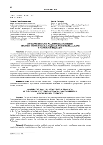 Обнаружены как схожие, так и отличительные особенности рассматриваемых отправных положений уголовно-исполнительного законодательства двух стран. Например, в УИК РК не содержится общих установлений относительно структуры и содержания уголовно-исполнительного законодательства, что имеет место в ст. 2 УИК РФ.