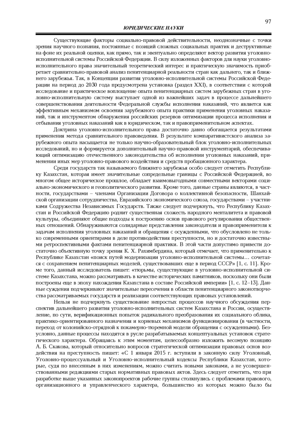 2. 	Скаков А. Б. Современное содержание уголовно-исполнительной политики Республики Казахстан: состояние и перспективы развития // Современное состояние и перспективы развития уголовно-исполнительной системы Российской Федерации: сборник материалов Всероссийской научно-практической конференции / сост. Е. Е. Новиков. СПб.: Университет ФСИН России, 2021. С. 178-184. EDN: PJOYCR