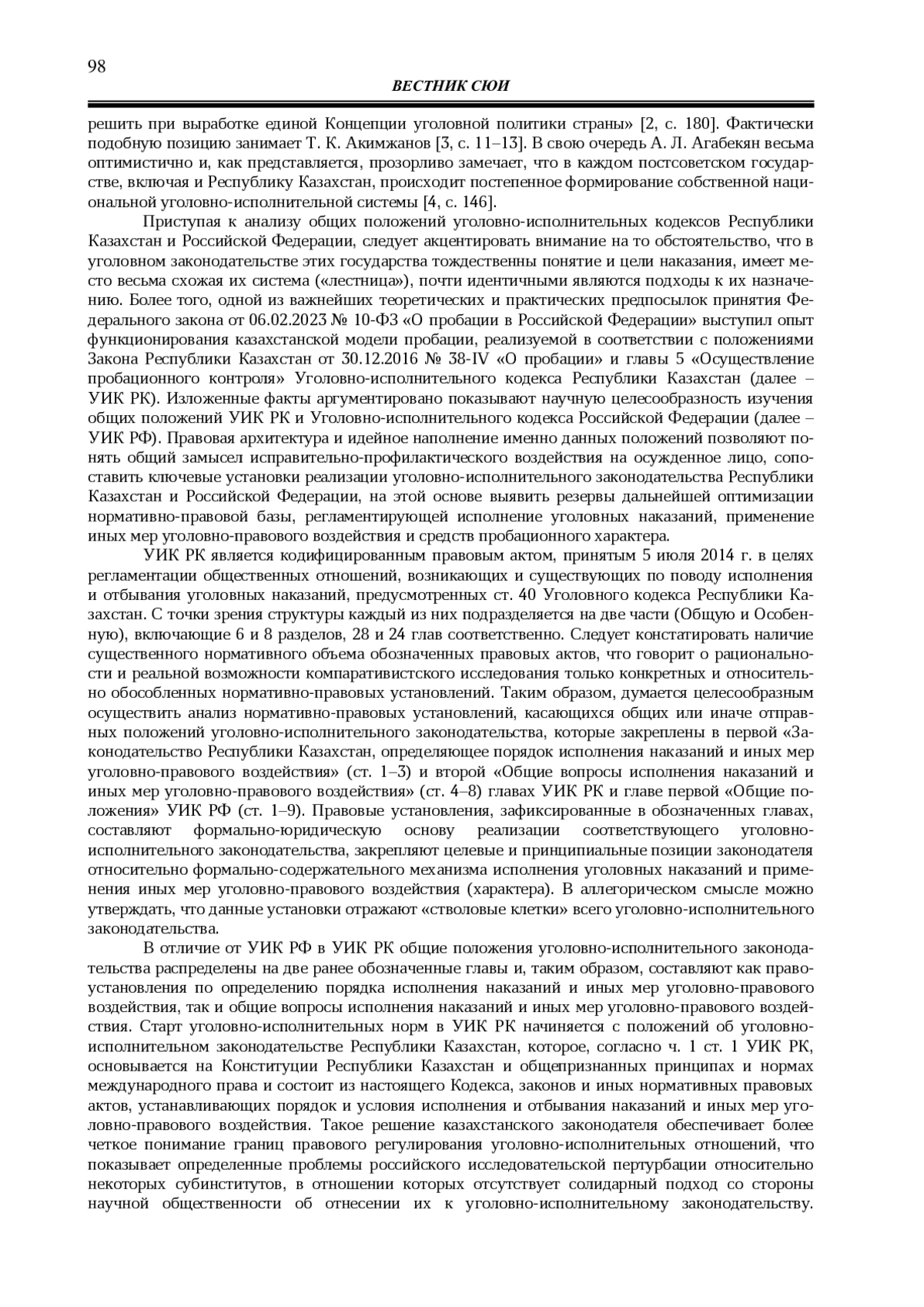 4. 	Агабекян А. Л. Особенности развития уголовного и уголовно-исполнительного законодательства на постсоветском пространстве // Уголовная юстиция. 2023. № 22. С. 143-147. EDN: GWLUEM