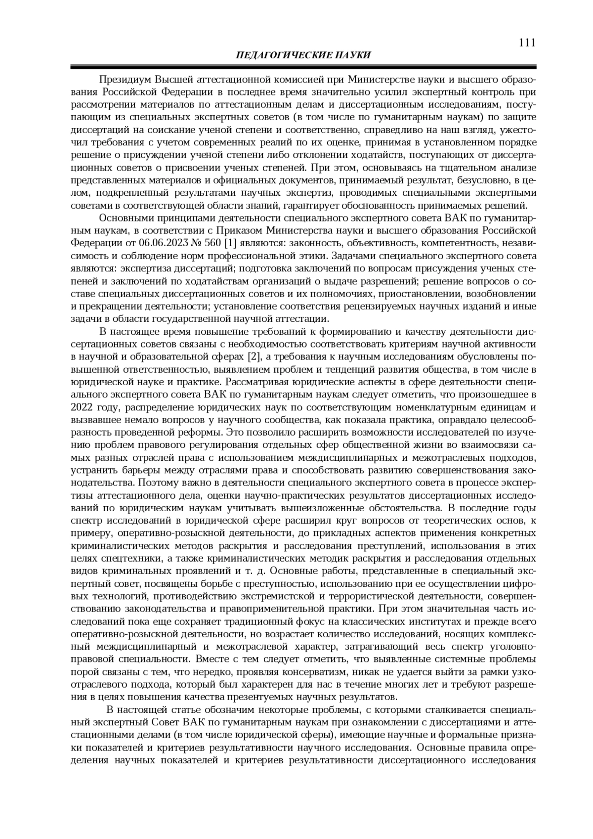 1. 	Об утверждении Положения о специальном экспертном совете Высшей аттестационной комиссии при Министерстве науки и высшего образования Российской Федерации: Приказ Минобрнауки России от 06.06.2023 № 560 [Электронный ресурс] // Официальный интернет-портал правовой информации (www.pravo.gov.ru) (дата обращения: 12.04.2025).
