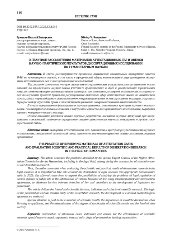 Президиум Высшей аттестационной комиссией при Министерстве науки и высшего образования Российской Федерации в последнее время значительно усилил экспертный контроль при рассмотрении материалов по аттестационным делам и диссертационным исследованиям, поступающим из специальных экспертных советов (в том числе по гуманитарным наукам) по защите диссертаций на соискание ученой степени и соответственно, справедливо на наш взгляд, ужесточил требования с учетом современных реалий по их оценке, принимая в установленном порядке решение о присуждении ученой степени либо отклонении ходатайств, поступающих от диссертационных советов о присвоении ученых степеней.