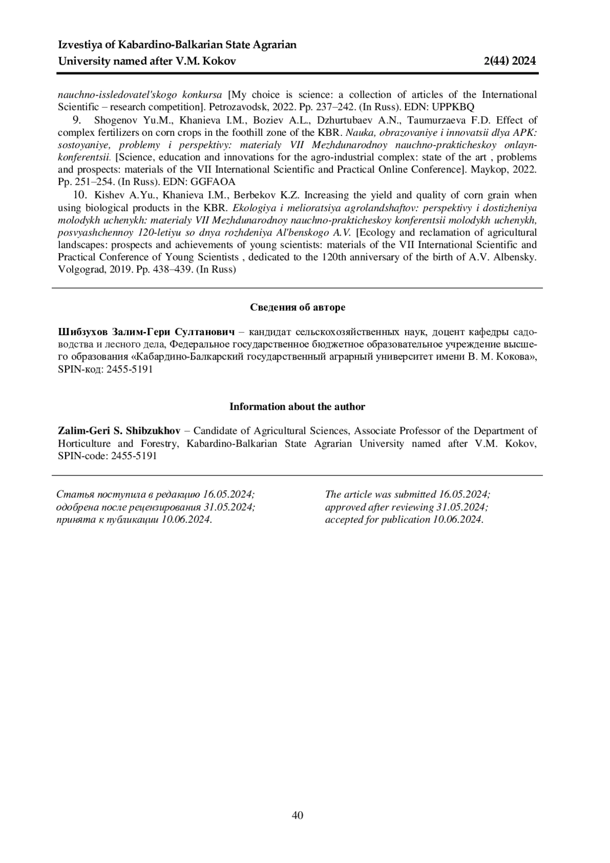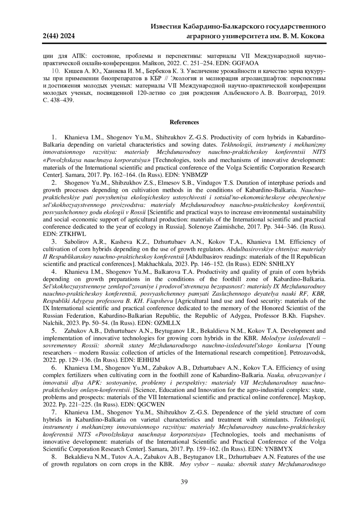 Журнал: ИЗВЕСТИЯ КАБАРДИНО-БАЛКАРСКОГО ГОСУДАРСТВЕННОГО АГРАРНОГО УНИВЕРСИТЕТА ИМ. В. М. КОКОВА