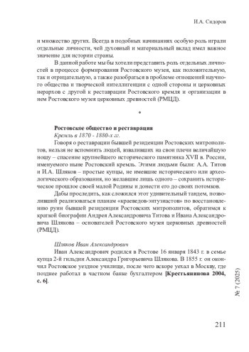 - Ким 2004 – Ким Е.В. И.А. Шляков и художественная жизнь в Ростове (Часть I. 1880-1890-е гг.) // История и культура ростовской земли: сб. мат. науч. конф., ГМЗ «Ростовский кремль» (11-13 ноября 2003). Ростов, 2004. C. 26-59.