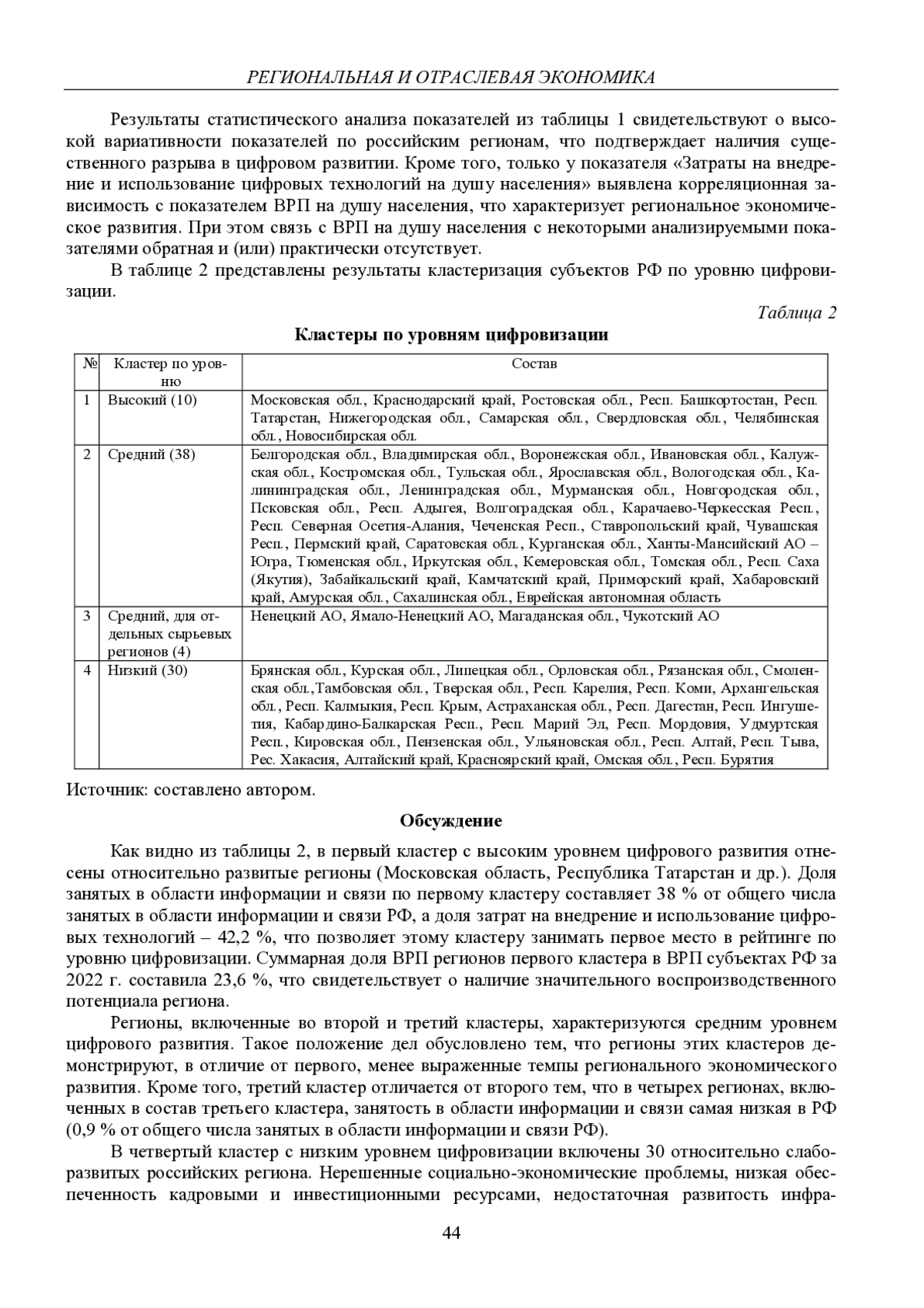 Ключевые фразы: региональное экономическое развитие, цифровизация, экономика региона, взаимосвязь, кластерный анализ