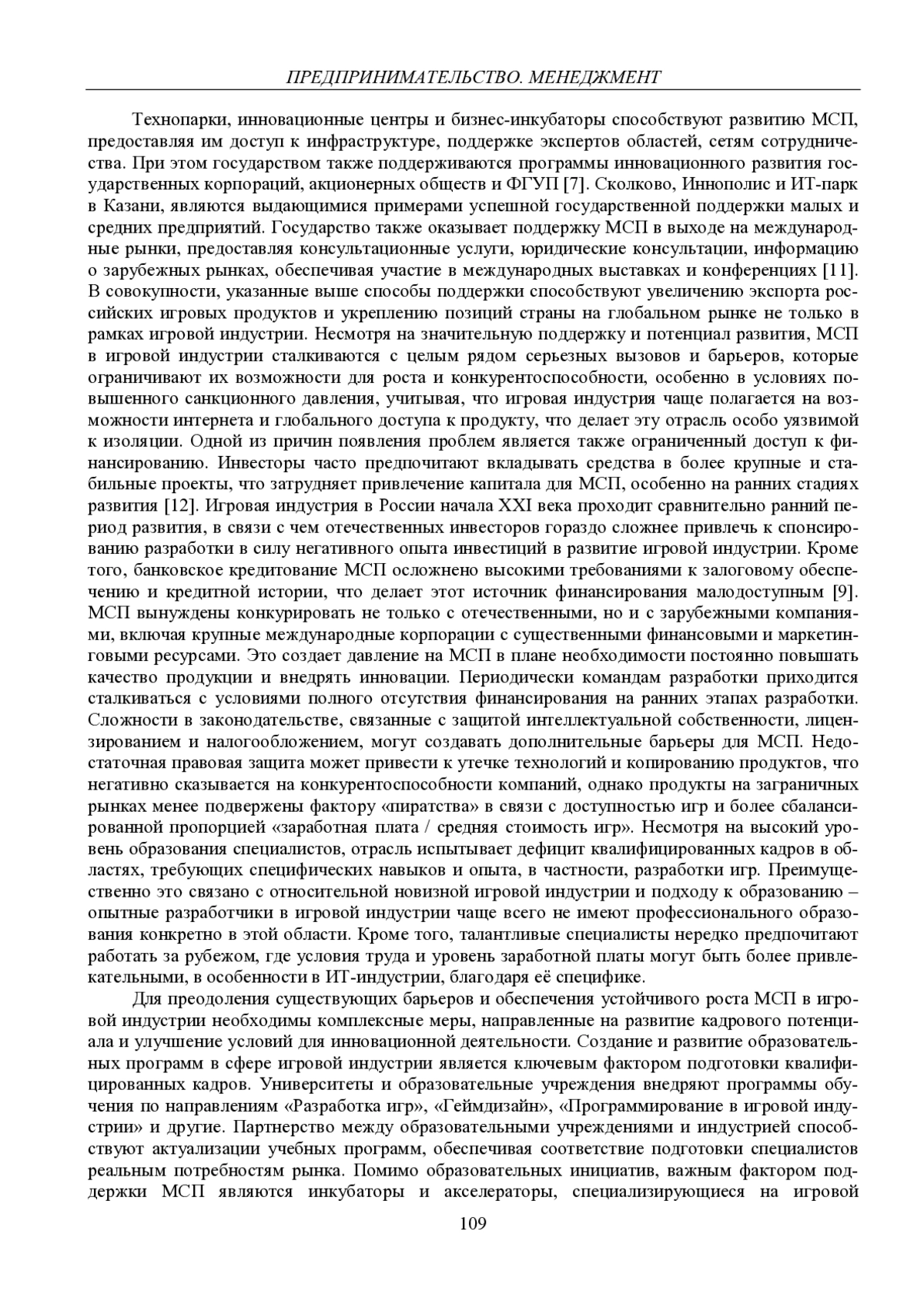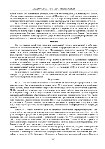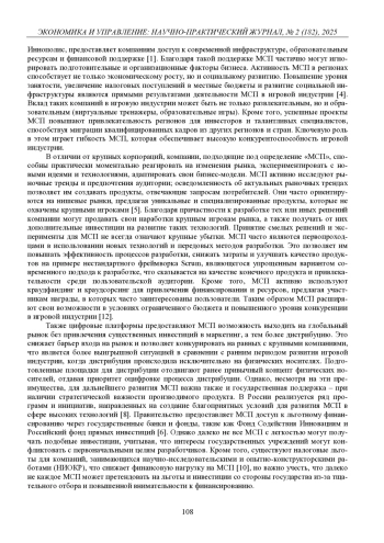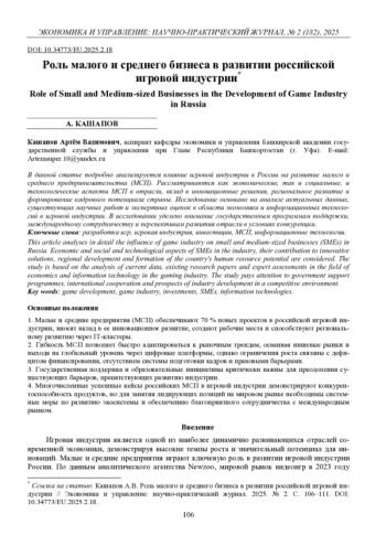 В данной статье подробно анализируется влияние игровой индустрии в России на развитие малого и среднего предпринимательства (МСП). Рассматриваются как экономические, так и социальные, и технологические аспекты МСП в отрасли, вклад в инновационные решения, региональное развитие и формирование кадрового потенциала страны. Исследование основано на анализе актуальных данных, существующих научных работ и экспертных оценок в области экономики и информационных технологий в игровой индустрии. В исследовании уделено внимание государственным программам поддержки, международному сотрудничеству и перспективам развития отрасли в условиях конкуренции