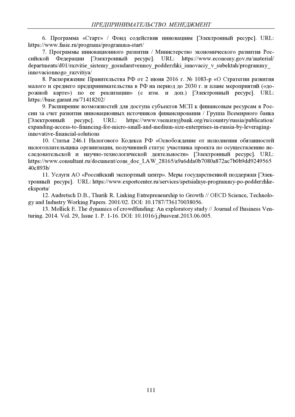 9. 	Расширение возможностей для доступа субъектов МСП к финансовым ресурсам в России за счет развития инновационных источников финансирования / Группа Всемирного банка [Электронный ресурс]. URL: https://www.vsemirnyjbank.org/ru/country/russia/publication/expanding-access-to-financing-for-micro-small-and-medium-size-enterprises-in-russia-by-leveraging-innovative-financial-solutions.