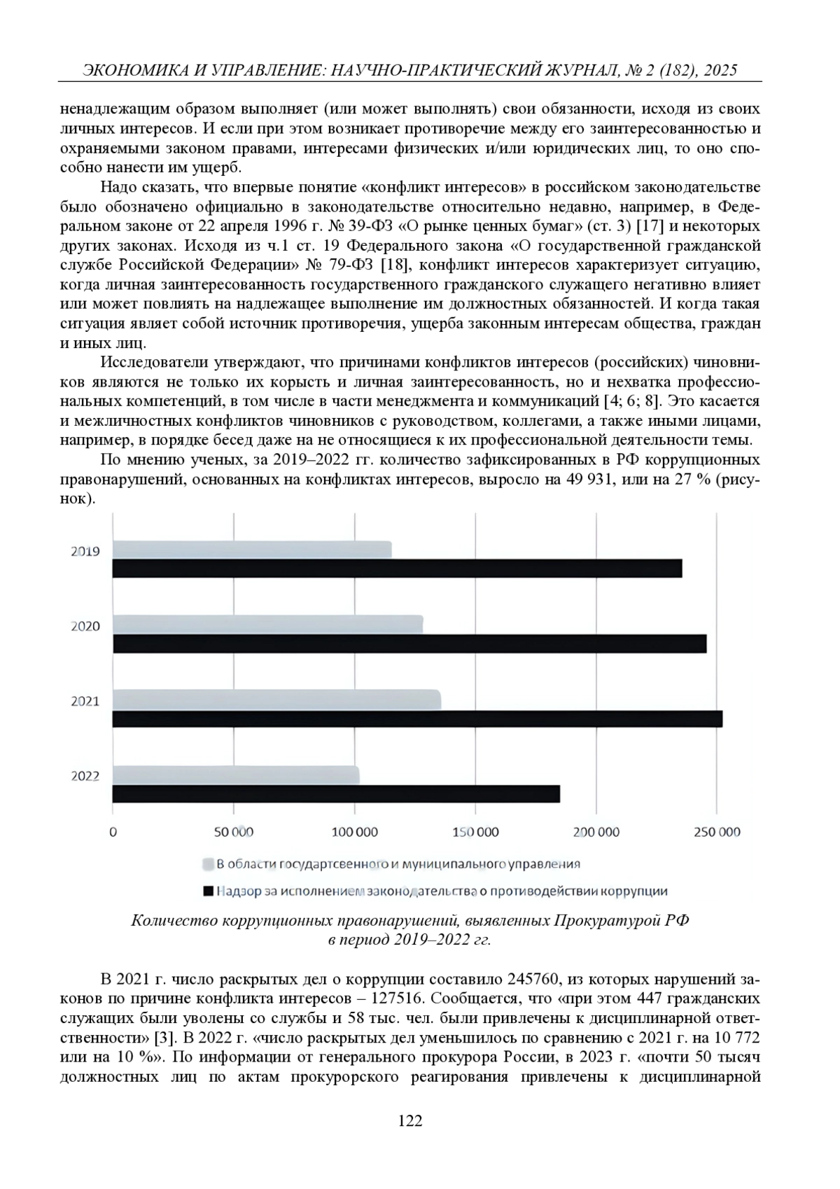 СТРЕЛЬЦОВ М. А., ПАЩЕНКО С. Н. КОНФЛИКТЫ ИНТЕРЕСОВ ГОСУДАРСТВЕННЫХ И/ИЛИ МУНИЦИПАЛЬНЫХ СЛУЖАЩИХ В УСЛОВИЯХ СЕТЕВОЙ ЭКОНОМИКИ // ЭКОНОМИКА И УПРАВЛЕНИЕ: НАУЧНО-ПРАКТИЧЕСКИЙ ЖУРНАЛ. 2025. № 2 (182)
