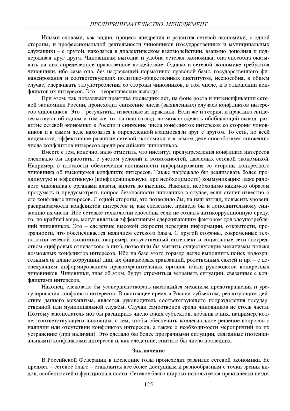 Ключевые фразы: СЕТЬ, экономика, муниципальный, государственный, служащий, чиновник, сетевое благо, конфликт, интерес, коррупция