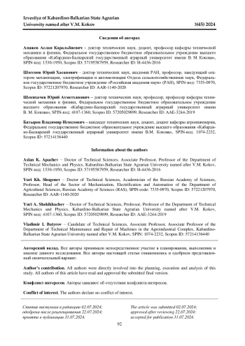 Журнал: ИЗВЕСТИЯ КАБАРДИНО-БАЛКАРСКОГО ГОСУДАРСТВЕННОГО АГРАРНОГО УНИВЕРСИТЕТА ИМ. В. М. КОКОВА
