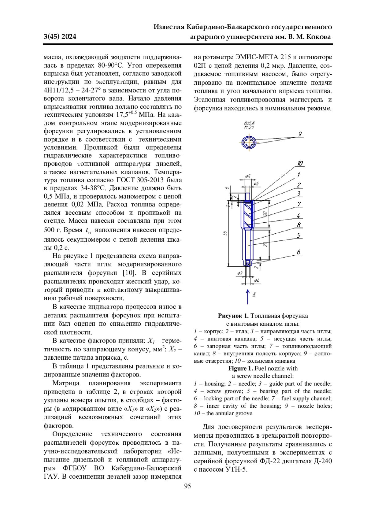 1. Гурин Т. Ю. Повышение долговечности форсунок автотракторных дизелей модернизацией распылителей: автореф. дис. … канд. техн. наук. Новосибирск, 2010. 15 с. EDN: QGUKON