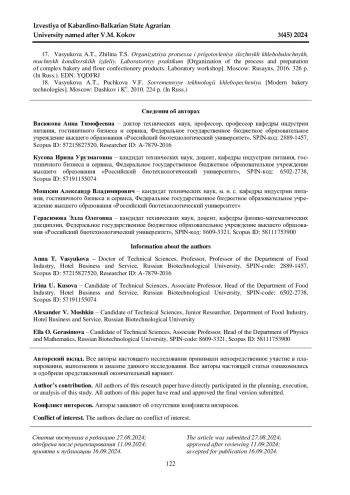 1. Marzec A., Kowalska J., Domian E., Galus S., Cyurzynska A., Kowalska H. Characteristics of dough rheology, structural, mechanical and organoleptic properties of biscuits with sweeteners. National library of medicine. Molecules. 2021; 26(21): 6638. DOI: 10.3390/molecules26216638 EDN: RQXVQN