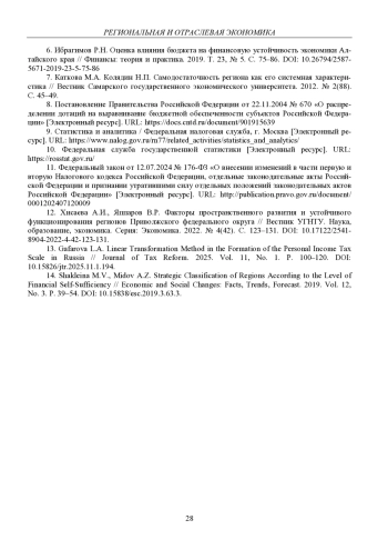 14. 	Shakleina M.V., Midov A.Z. Strategic Classification of Regions According to the Level of Financial Self-Sufficiency // Economic and Social Changes: Facts, Trends, Forecast. 2019. Vol. 12, No. 3. P. 39-54.  DOI: 10.15838/esc.2019.3.63.3  EDN: XBQYWL