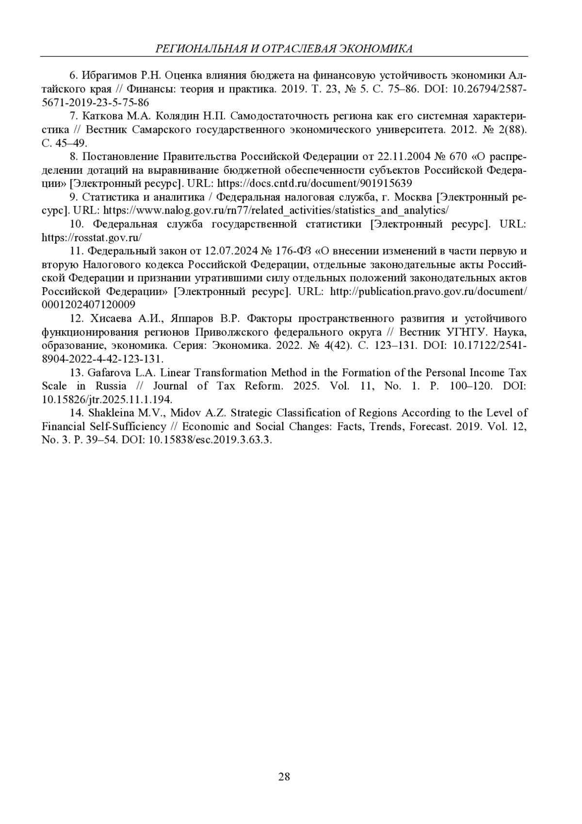 13. 	Gafarova L.A. Linear Transformation Method in the Formation of the Personal Income Tax Scale in Russia // Journal of Tax Reform. 2025. Vol. 11, No. 1. P. 100-120.  DOI: 10.15826/jtr.2025.11.1.194  EDN: XPPNOA