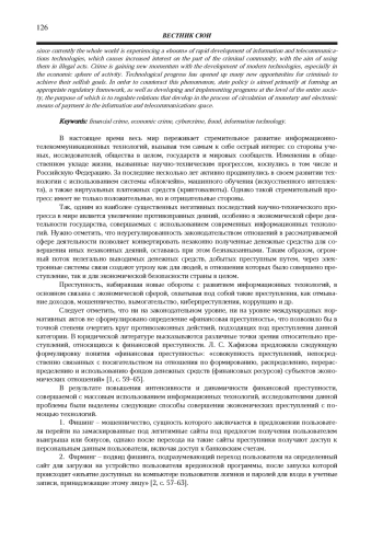 2. 	Батюкова В. Е. Киберпреступления в банковской сфере // Банковское право. 2021. № 2. С. 57-63. EDN: WKQCJX