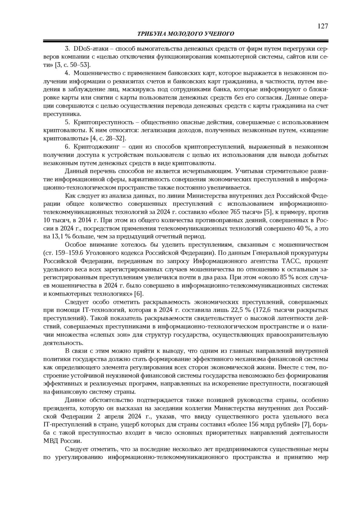 3. 	Терпогосов Д. А. Экономические преступления, совершенные кибермошенниками // Global science: сборник статей IV Международной научно-практической конференции. Пенза, 2024. С. 50-53.
