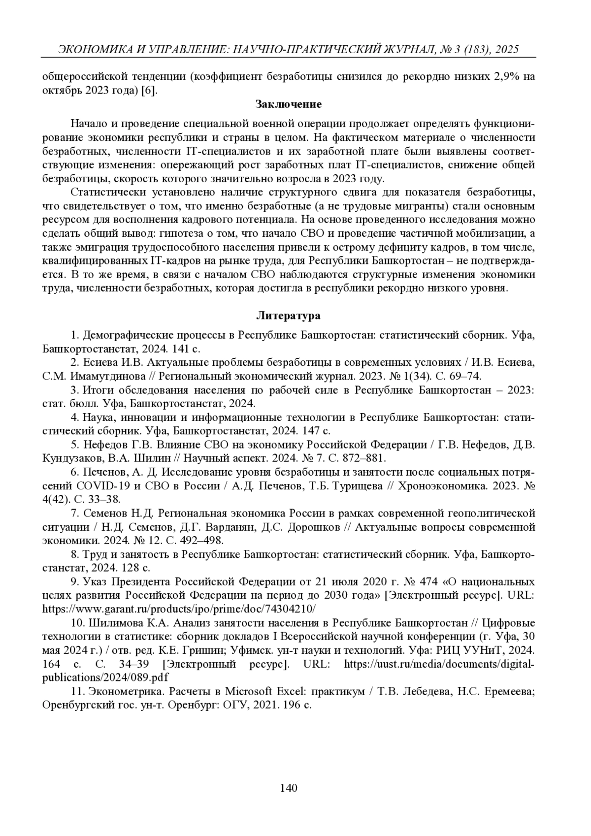 8. 	Труд и занятость в Республике Башкортостан: статистический сборник. Уфа, Башкортостанстат, 2024. 128 с.