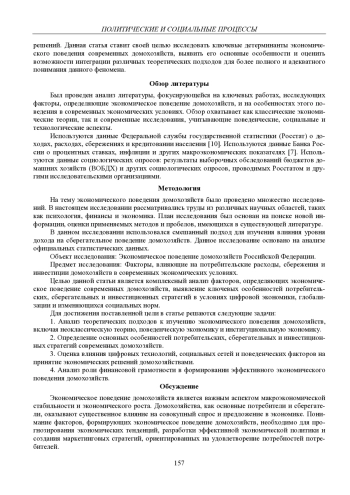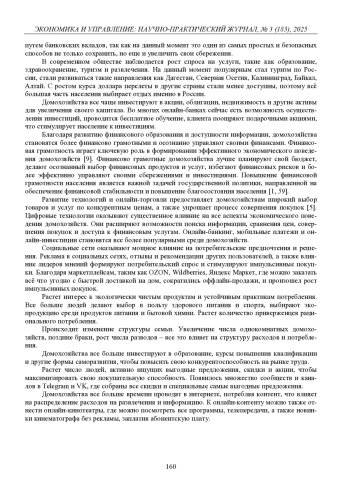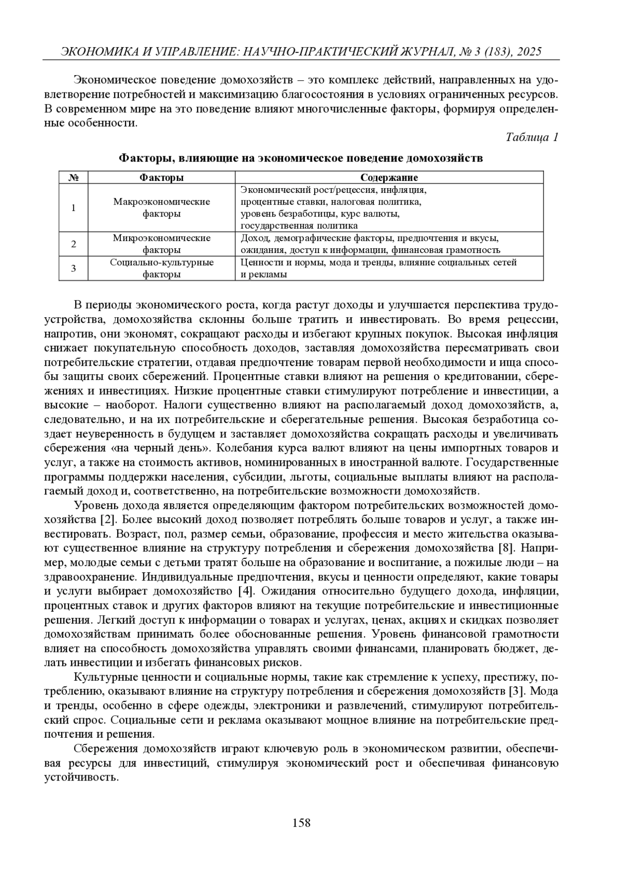 Экономическое поведение домохозяйств является важным аспектом макроэкономической стабильности и экономического роста. Домохозяйства, как основные потребители и сберегатели, оказывают существенное влияние на совокупный спрос и предложение в экономике. Понимание факторов, формирующих экономическое поведение домохозяйств, необходимо для прогнозирования экономических тенденций, разработки эффективной экономической политики и создания маркетинговых стратегий, ориентированных на удовлетворение потребностей потребителей. В статье анализируются ключевые факторы, оказывающие влияние на экономическое поведение современных домохозяйств, а также выделяются основные особенности этого поведения. Рассматриваются макроэкономические, микроэкономические и социально-культурные факторы, формирующие потребительские и инвестиционные решения домохозяйств. Подчеркивается значимость учета этих факторов для разработки эффективной экономической политики и маркетинговых стратегий.