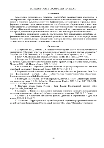 4. 	Валиуллина Э.Р. Сбережения домашних хозяйств как фактор поступательного развития российской экономики // Финансовый бизнес. 2023. № 9(243). С. 3-5.  EDN: WAGSTV