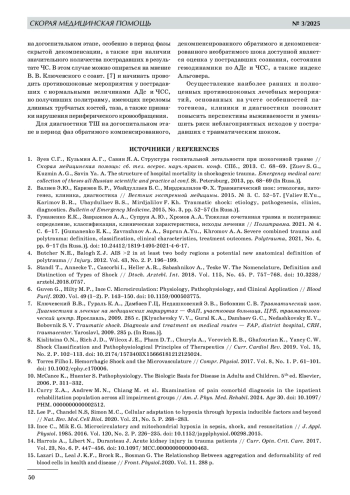 3. Гуманенко Е.К., Завражнов А. А., Супрун А. Ю., Хромов А. А. Тяжелая сочетанная травма и политравма: определение, классификация, клиническая характеристика, исходы лечения // Политравма. 2021. № 4. С. 6-17.