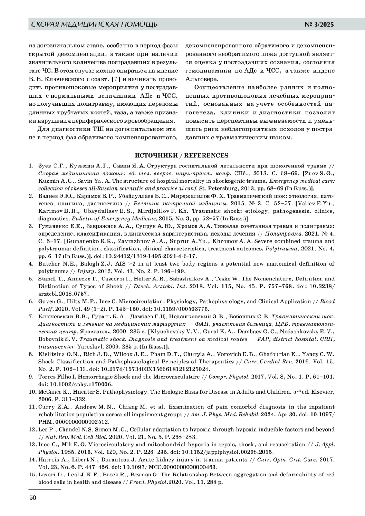 Zuev S. G., Kuzmin A. G., Savin Ya. A. The structure of hospital mortality in shockogenic trauma. Emergency medical care: collection of theses all-Russian scientific and practice al. conf. St. Petersburg, 2013, pp. 68-69 (In Russ.).