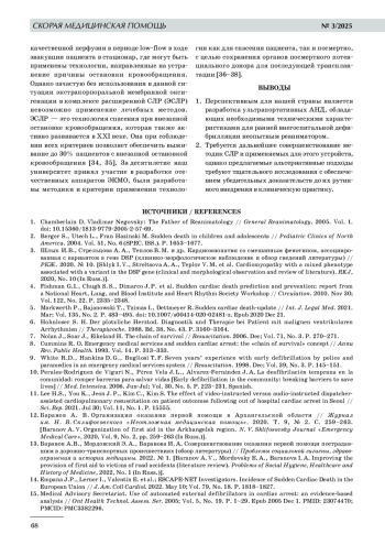 17. 	Debaty G., Perkins G. D., Dainty K. N. et al.International Liaison Committee on Resuscitation Basic Life Support Task Force. Effectiveness of ultraportable automated external defibrillators: A scoping review // Resusc. Plus. 2024. Aug 7; Vol. 19. Р. 100739.