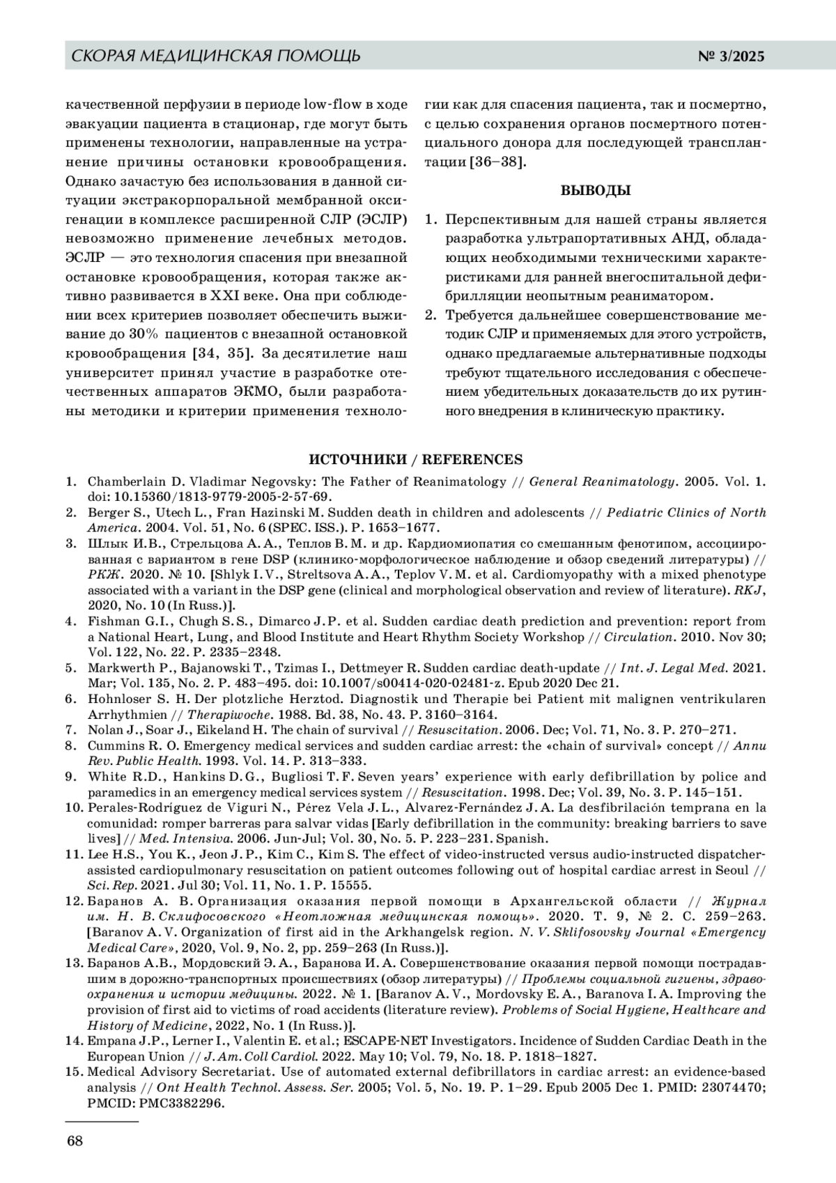 1. 	Chamberlain D. Vladimar Negovsky: The Father of Reanimatology // General Reanimatology. 2005. Vol. 1. DOI: 10.15360/1813-9779-2005-2-57-69