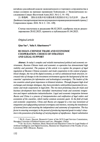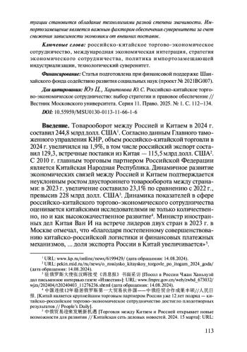 17. 崔晓敏,苏庆义.全球产业链视角下中俄贸易合作的特征与前景//俄罗斯东欧中亚研究 [Цуй С., Су Ц. Характеристики и перспективы китайско-российского торгового сотрудничества с точки зрения глобальной производственной цепочки // Исследования по России, Восточной Европе и Центральной Азии. 2023. № 2. C. 1-20].