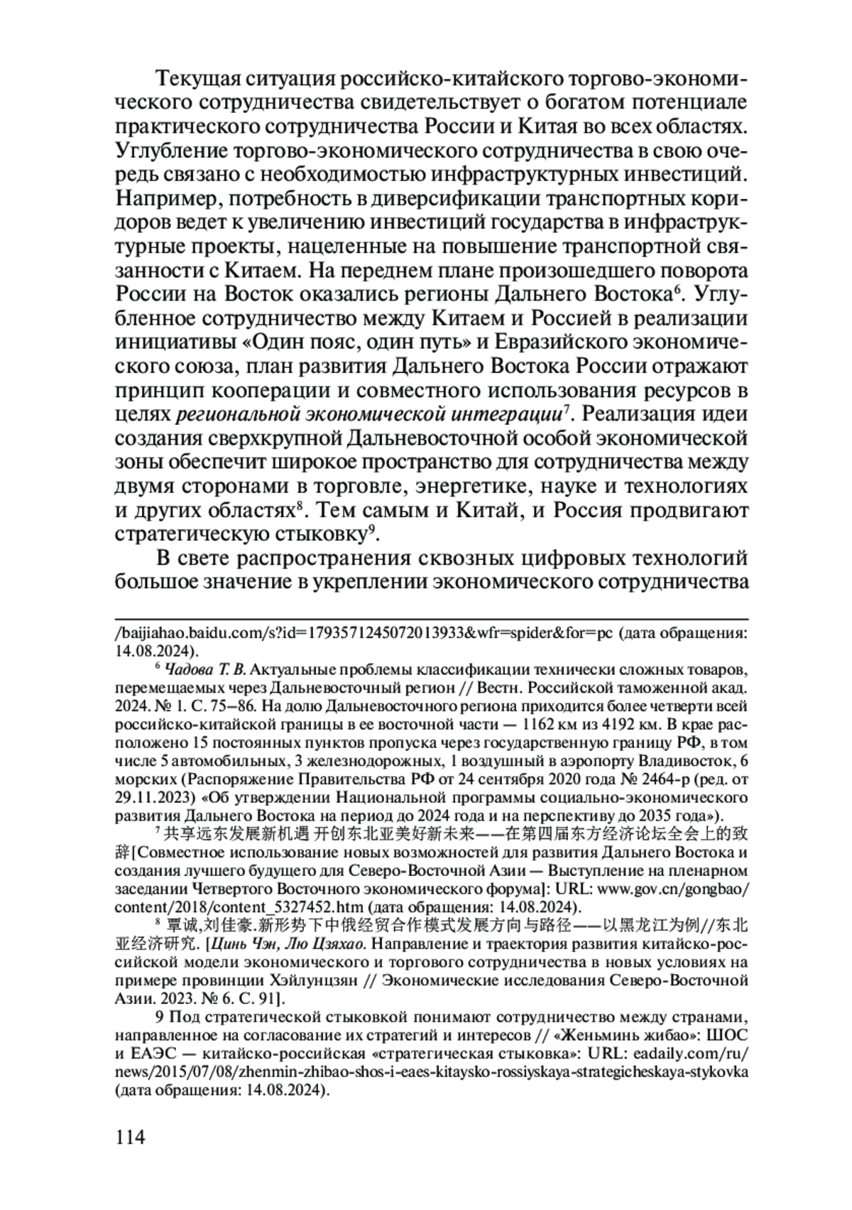 10. Чадова Т. В. Актуальные проблемы классификации технически сложных товаров, перемещаемых через Дальневосточный регион // Вестн. Российской таможенной акад. 2024. № 1. С. 75-86.