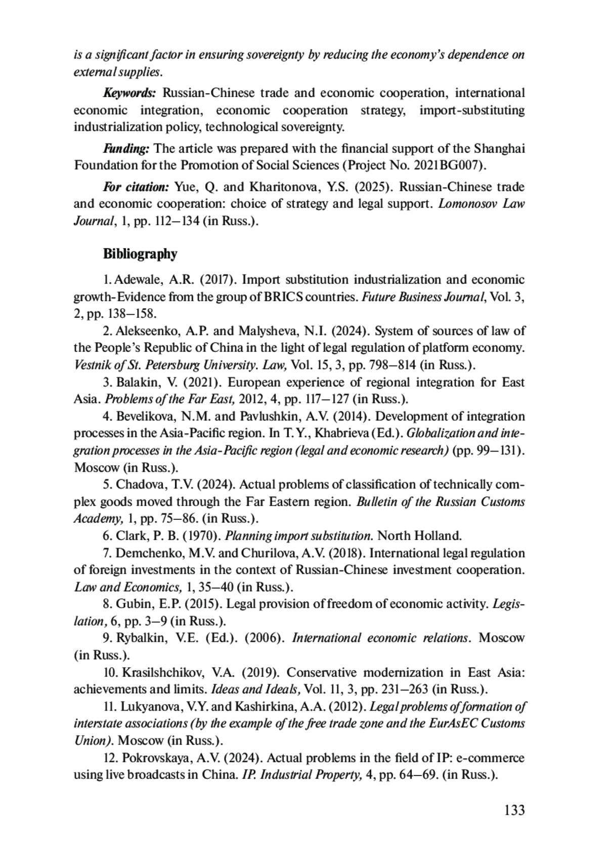 6. Демченко М. В., Чурилова А. В. Международно-правовое регулирование иностранных инвестиций в контексте российско-китайского инвестиционного сотрудничества // Право и экономика. 2018. № 1. С. 35-40. EDN: YPTQKD