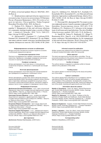 10. 	Шулутко А.М., Османов Э.Г., Крылов А.Ю., Натрошвили А.Г. Обширные нагноительные процессы после комбинированной флебэктомии. Хирургия. Журнал им. Н.И. Пирогова. 2019;12:54-59. DOI: 10.17116/hirurgia201912154