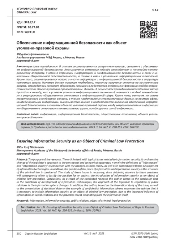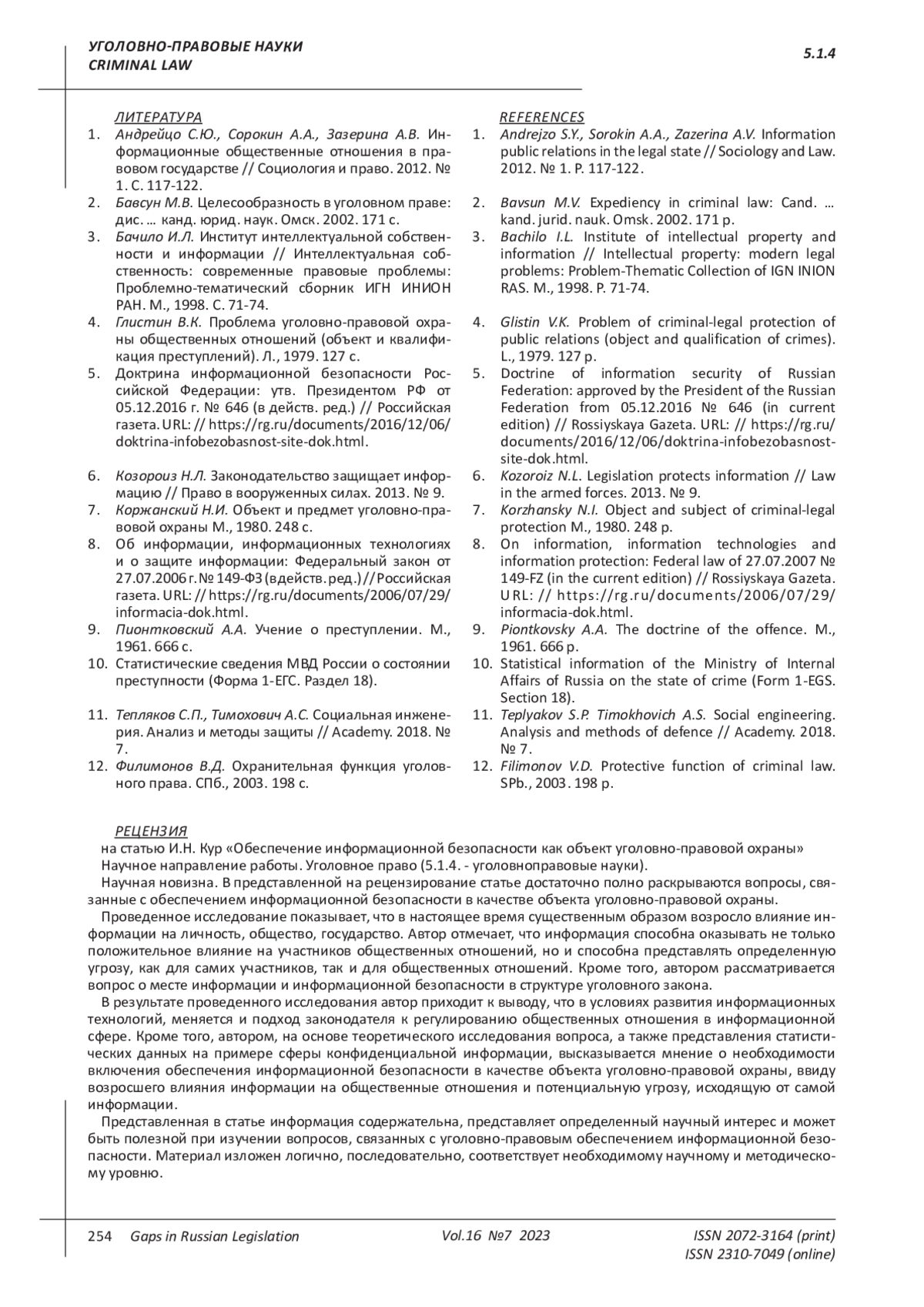 1. Андрейцо С.Ю., Сорокин А.А., Зазерина А.В. Информационные общественные отношения в правовом государстве // Социология и право. 2012. № 1. С. 117-122. EDN: OXSYPP