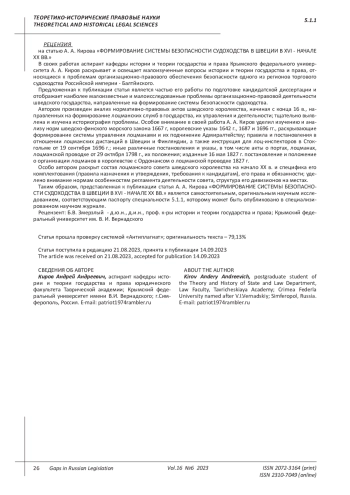 В статье раскрывается процесс формирования системы безопасности судоходства в Швеции в 16 - начале 20 вв. Установлено, что он происходил на основе формирования правового статуса рулевых (лоцманов), наделенных государственными усадьбами и выполняющими соответствующие функции. На военно-морской флот были наняты особые рулевые. К концу 18 в. в Швеции королевскими указами в 1642 г., 1687 и 1696 гг. сформирована система лоцманской службы. В 1677 г. учреждена государственная лоцманская служба при создании коллегии по лоцманской и маячной службе. Пилотажем и маяками руководил директор лоцманов, подчиненный Адмиралтейств-коллегии. В 1803 г. лоцманская контора была передана в ведение Управления морских дел. В 1872 г. лоцманское и маячное дела были выделены из состава этого управления и переданы в ведение лоцманской коллегии. С 1888 г. ее директор получил звание генерал-пилота. В 1904 г. было организовано 6 лоцманских округов, создан Лоцманский совет (подчинялся министерству морской обороны) как общее руководство для Лоцманской коллегии и подчиненных лоцманских округов.