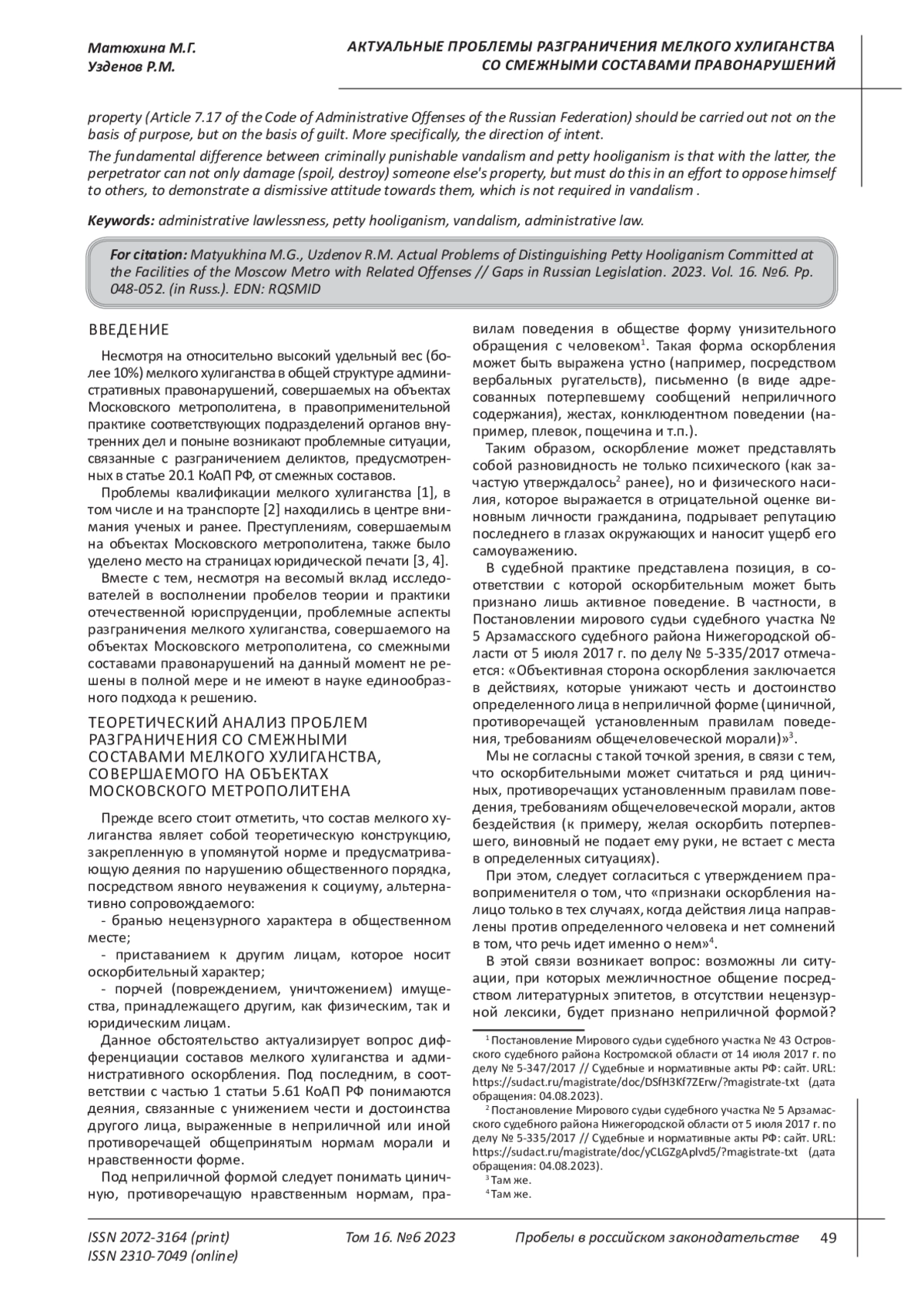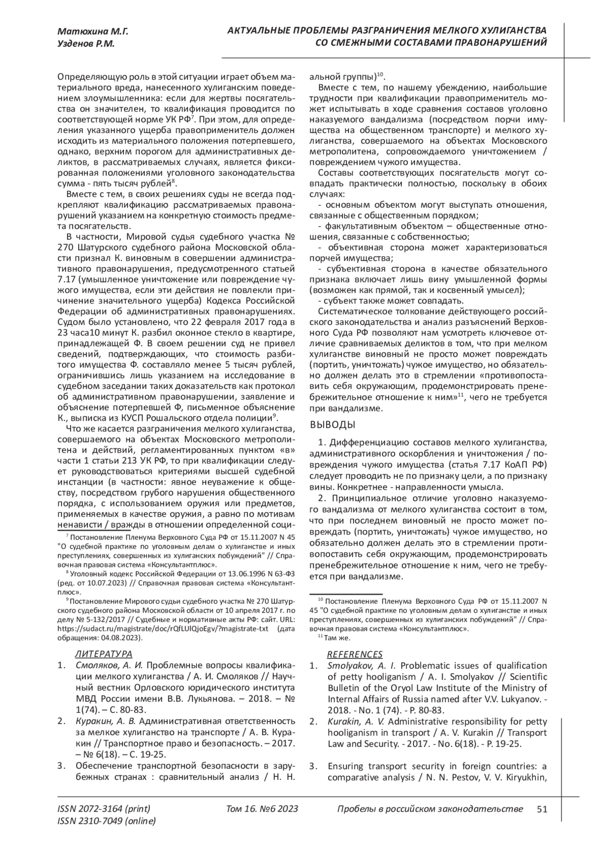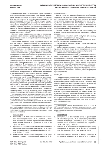 2. Куракин, А. В. Административная ответственность за мелкое хулиганство на транспорте / А. В. Куракин // Транспортное право и безопасность. - 2017. - № 6(18). - С. 19-25. EDN: ZGBJML